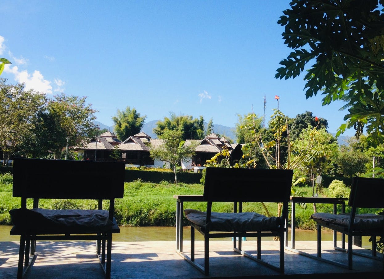 I would be staying at a hostel just across the Pai River. To get there, I had to cross a small bamboo bridge. The hostel was tricky to find, but thankfully, after some fumbling with a map, I finally arrived. By then, it was early afternoon. While waiting for check-in, I took the chance to update my best friend back home. A few days on the farm without Internet had made communication tricky, and they needed to know where I was. Keeping someone I trust informed while traveling alone is important, even for someone like me, who is naturally quiet and used to moving through the world in silence.