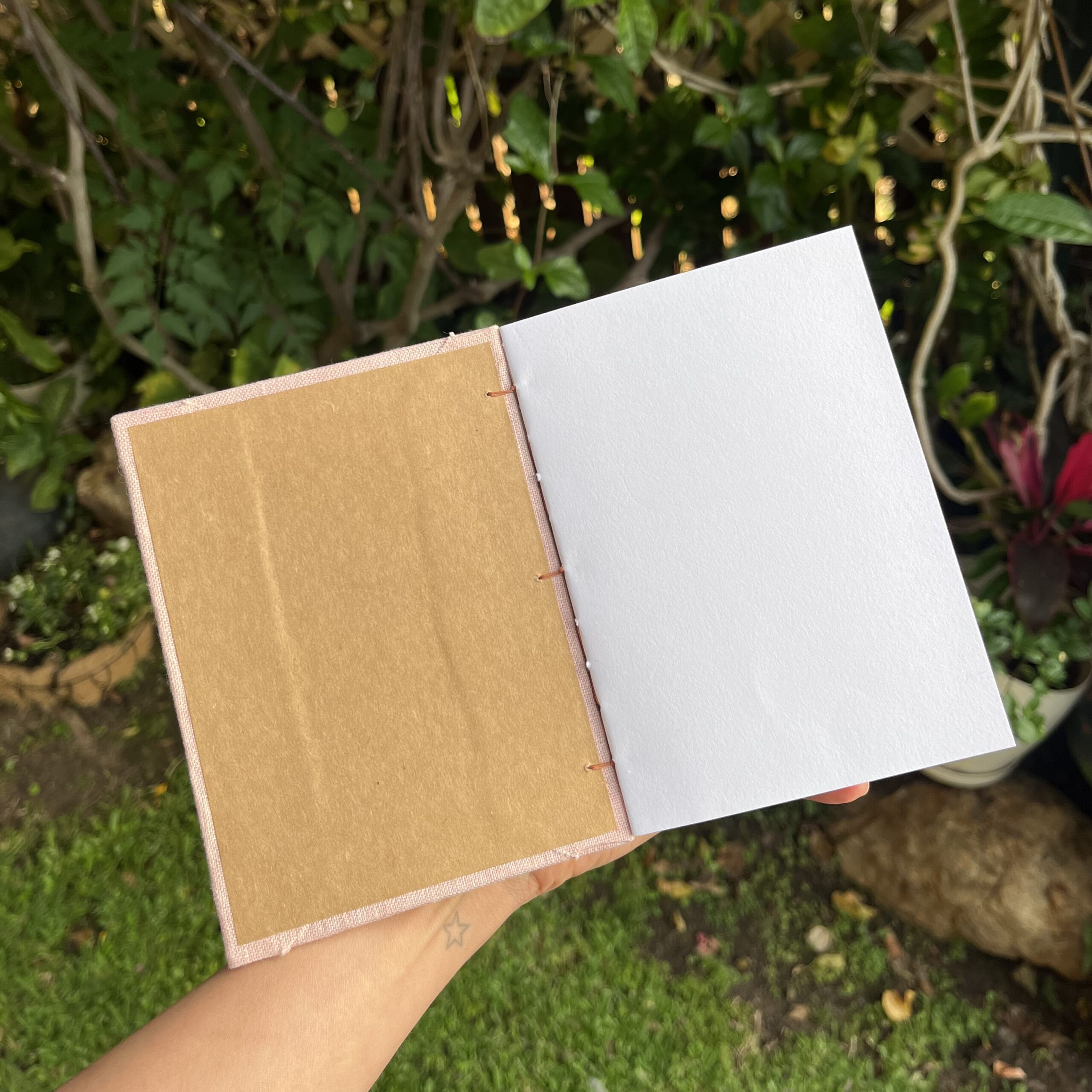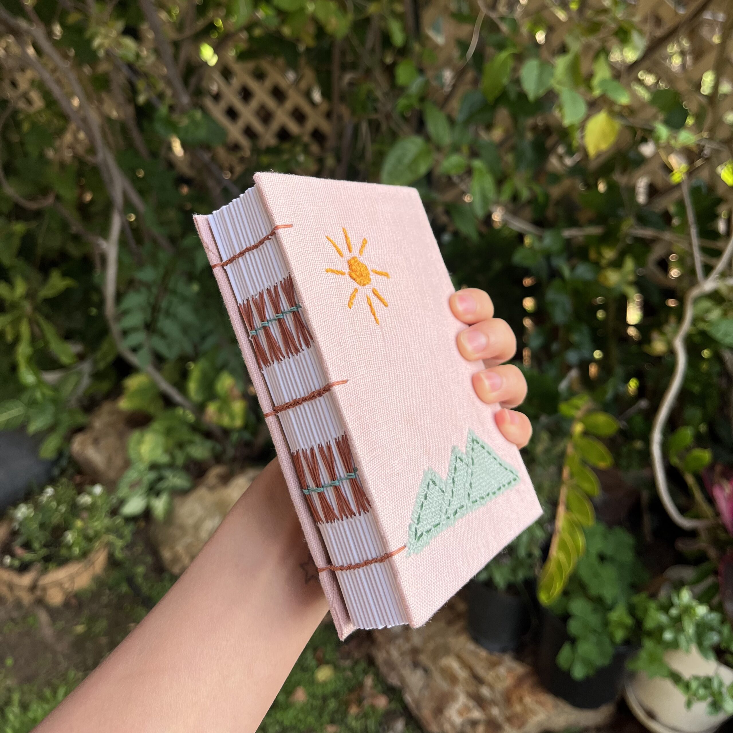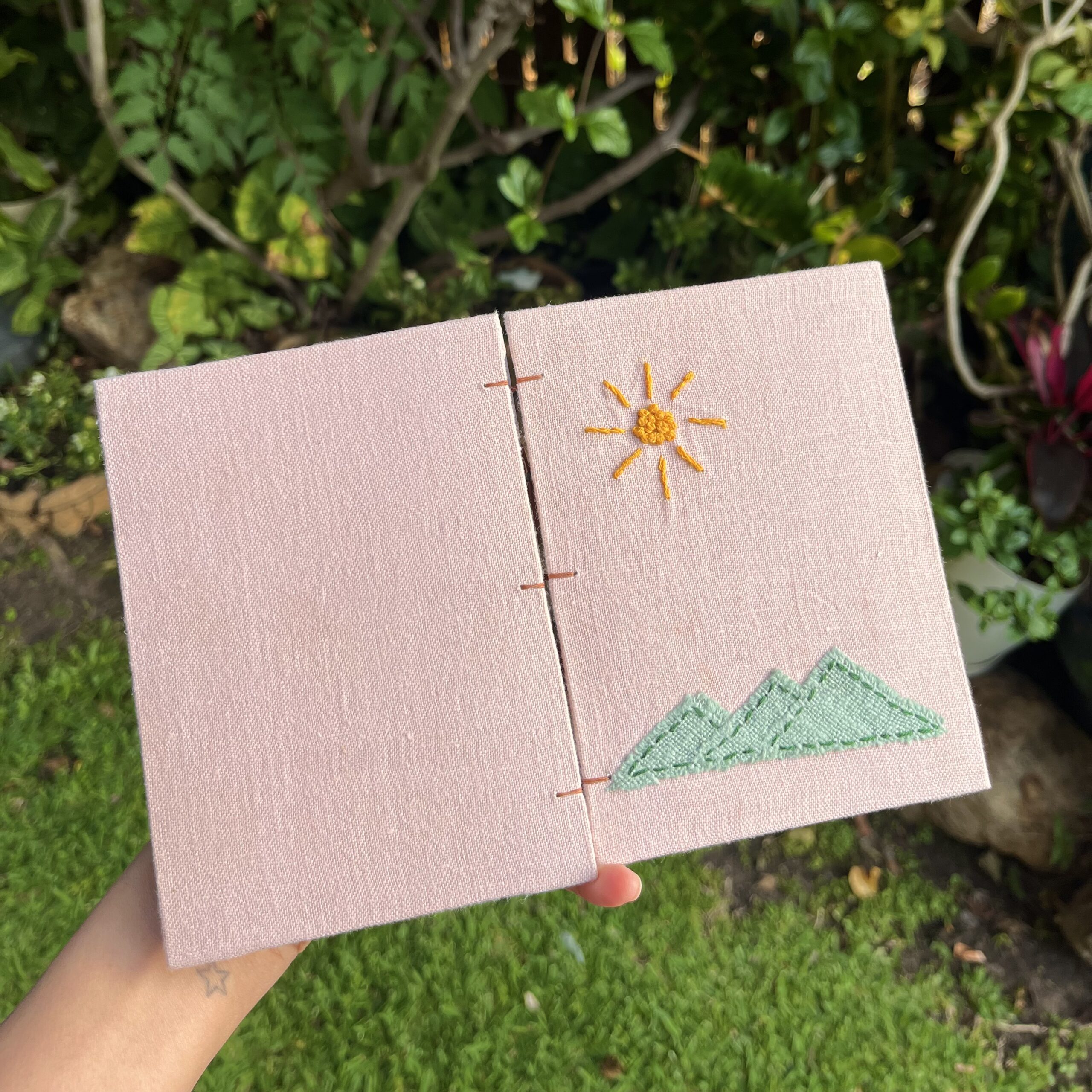 The cover is made from linen I dyed naturally using avocado skins and pits. Handbound with 110gsm paper using coptic stitch.